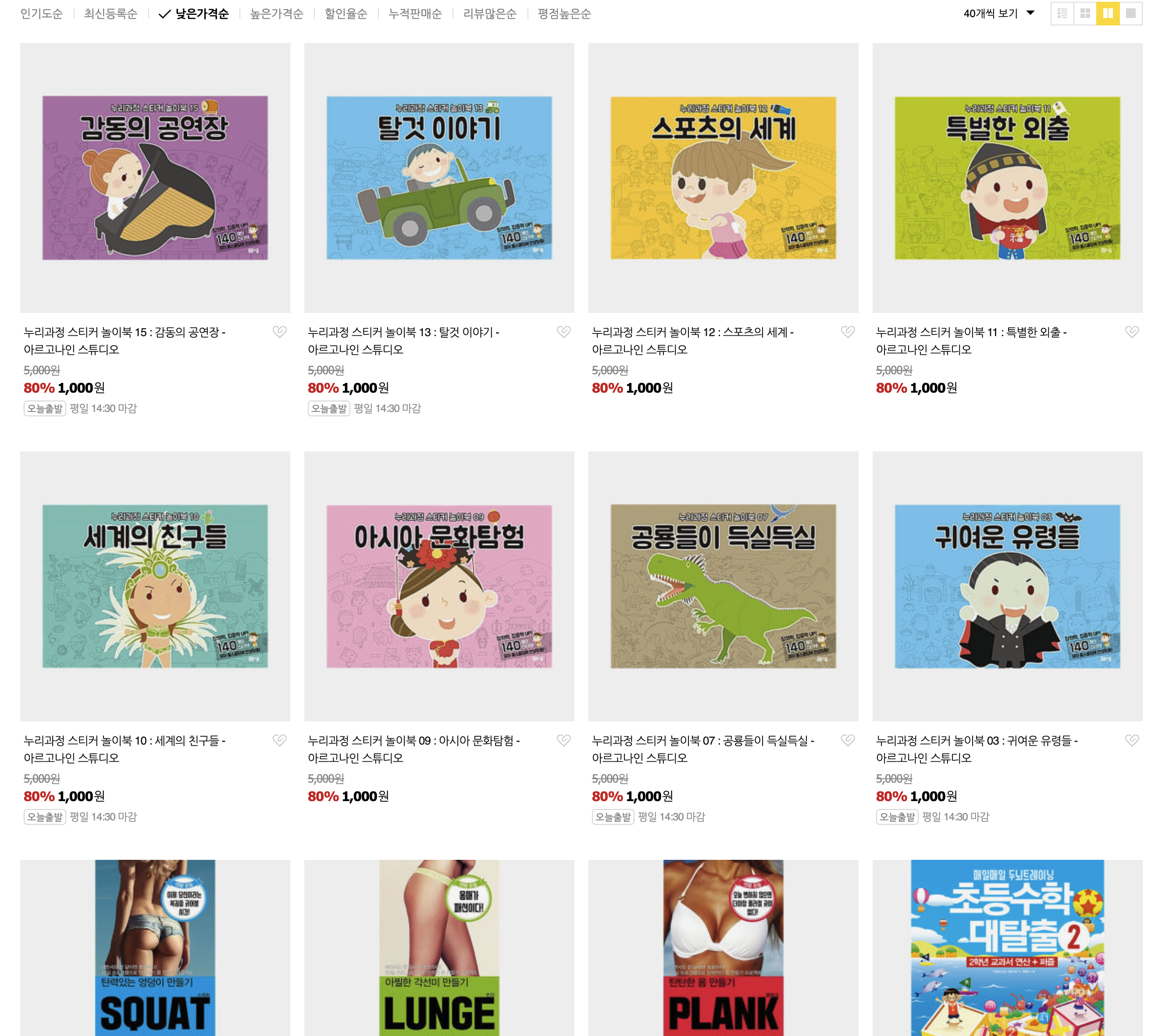 Yes24 사태 기념으로 창고에 있는 모든 책을 다 정리하기로 했습니다. 스티커책 이건 뭐건 다 알리, 테무 다이소보다 더 싸게 책을 판매합니다. 1000원부터 기존 가격을 80% 정도는 기본이 된 유아, 아동 책을 정리합니다. 창고비를 더 감당 못하겠습니다. [image: wBs0TcVzWtZuhLgmG2yA7BsNnKE.png] [image: lZo1MY_g7pOk6hXudNgz-mkDz0U.png] [image: hvX2W_I3CqEJ4H6qKjmdehyHb08.png] 얼핏 저희 스마트스토어 같지만 알라딘이 운영하는 쇼핑몰입니다. 저를 믿지 마시고 (?) 알라딘 서점을 믿어보세요. 책팔아서 뭘 남기자보다 아예 남들보다 더 싸게 정리하는 것으로 저희 출판사는 봄봄스쿨이고 어린이 스티커책의 명가? 였는데 스티커 원단가격이 높아지기도 하고 저희가 쓰던 리무벌스티커는 말도 안되는 가격이 되어 제작을 포기했습니다. 막상 포기하니까 우리가 제일싸네 ! 그리고 자이언트 시리즈, 내셔널지오그래픽 시리즈는 정말 좋은 책입니다. 판권만료가 얼마 안남아서 싸게 정리합니다. 링크도 퍼트려주세요 ㅠㅠ https://smartstore.naver.com/argo9/category/50005542?st=LOW_DISP_PRICE&dt=BIG_IMAGE&page=1&size=40